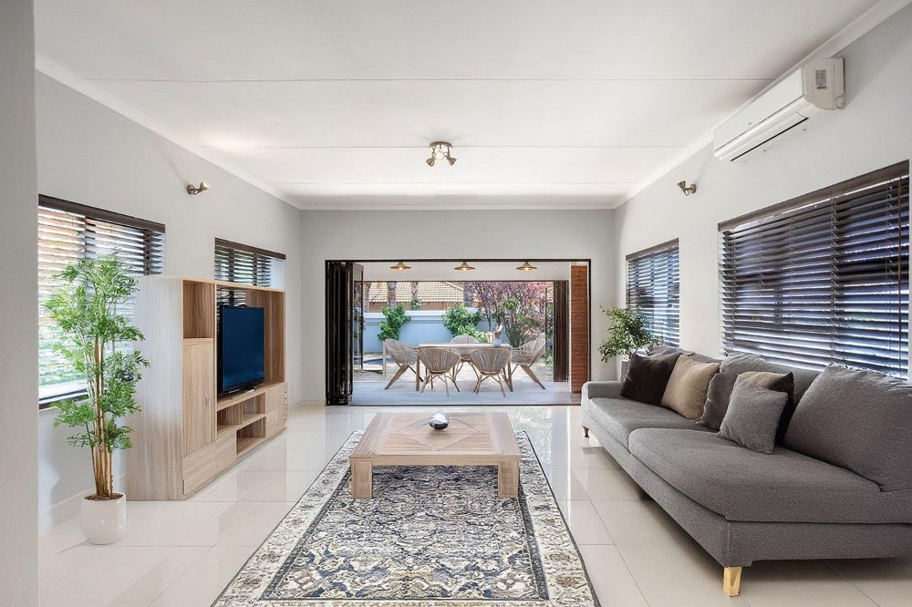 Sole and exclusive mandate. This beautifully renovated home in a sought-after security estate combines modern elegance with practical sophistication. Recently renovated to a very high standard, the home showcases a brand-new kitchen fitted with sleek white cabinetry, Caesarstone countertops, and a central island with gas stove — the perfect space for both everyday living and entertaining.
